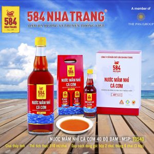 Nước mắm 584 Nha Trang được chế biến từ nguyên liệu cá cơm ở vùng biển Nha Trang. Cá cơm được lựa chọn kỹ lưỡng nhằm đảm bảo chất lượng nước mắm tốt nhất. Thành lập năm 1977, 584 Nha Trang đã khẳng định vị thế của mình với gần 50 năm hoạt động trong lĩnh vực nước mắm truyền thống.